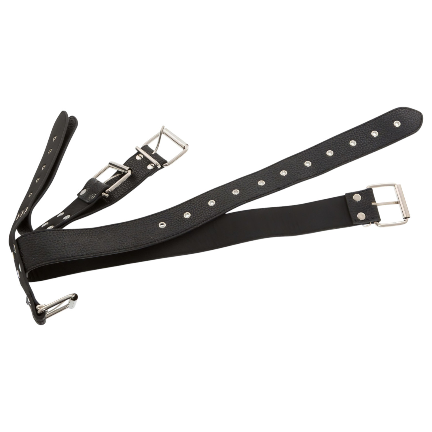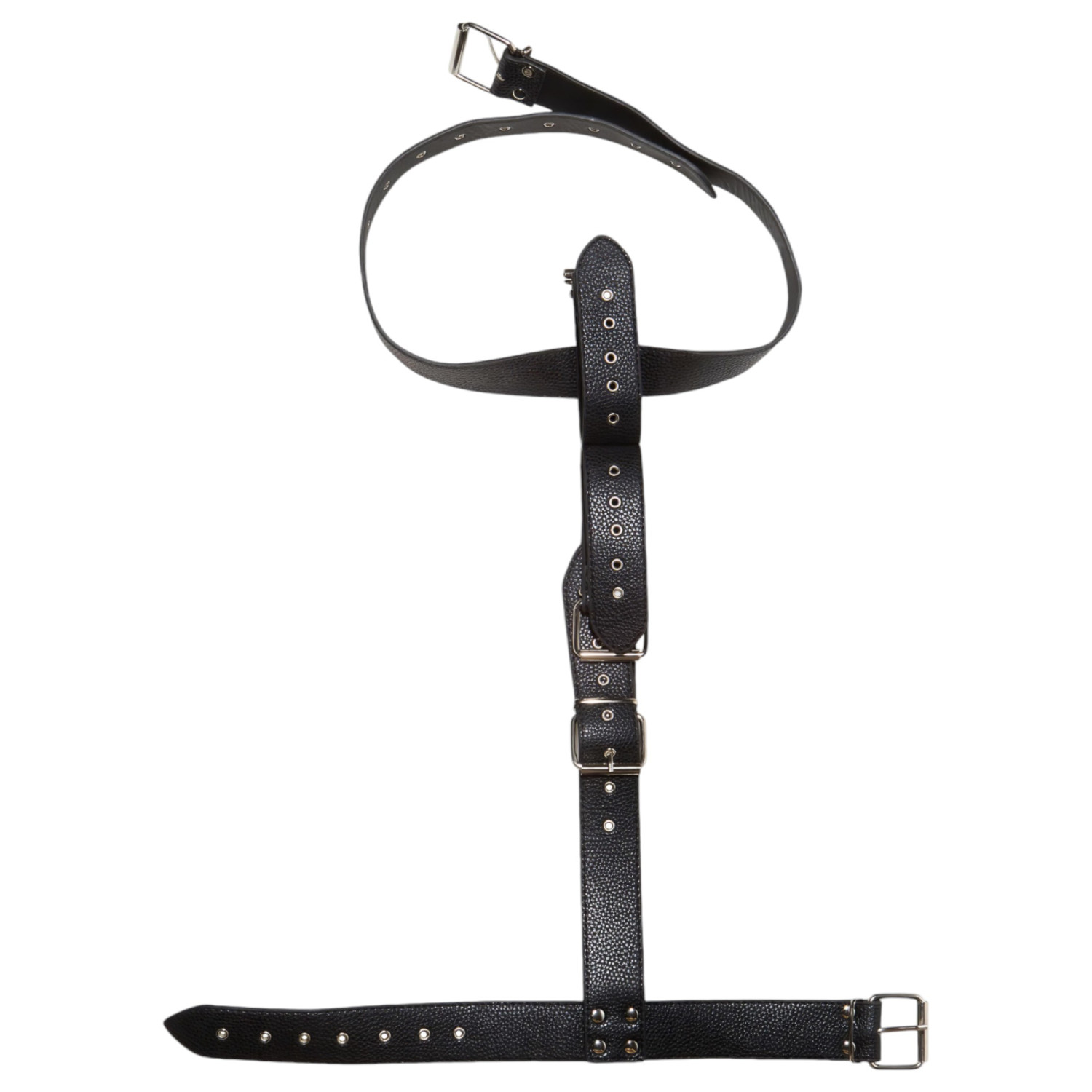 Setul de legături, realizat din piele ecologică de înaltă calitate, ajută la fixarea mâinilor în spatele corpului.