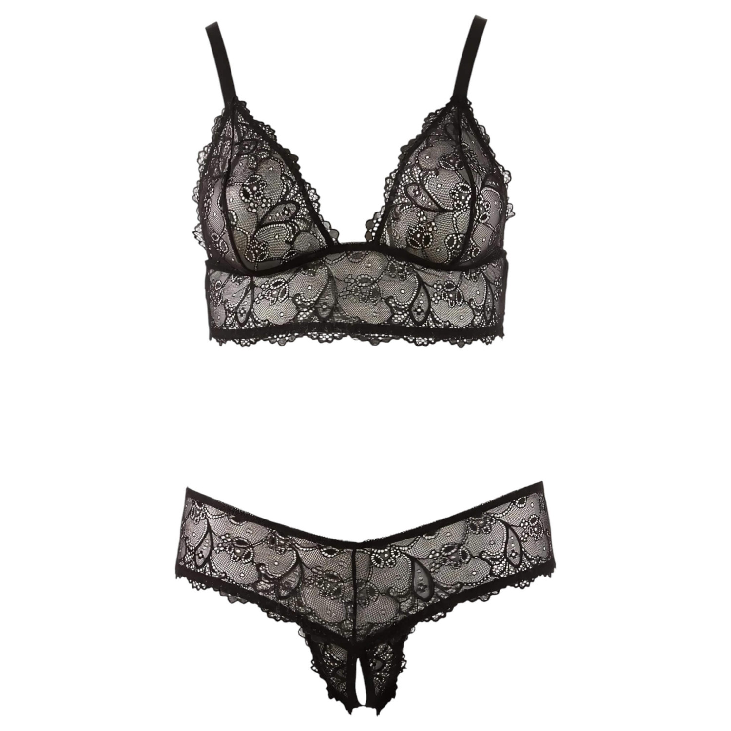 Cottelli Plus Size - set sutien din dantelă (negru) - XXL
