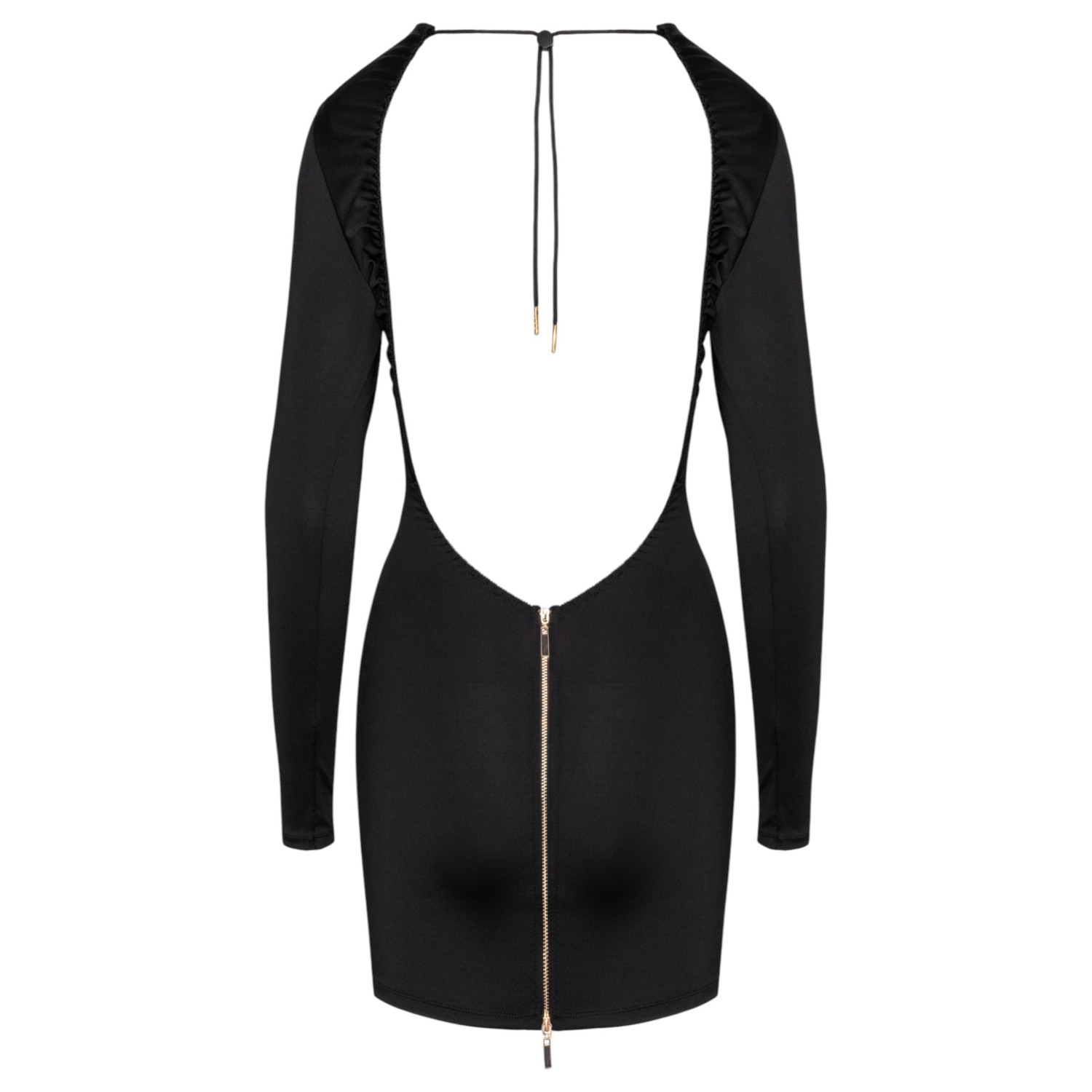 Rochia mini Cottelli Party, neagră și cu mâneci lungi, este elegantă și provocatoare – simplă în față, dar cu adevărat uluitoare în spate.