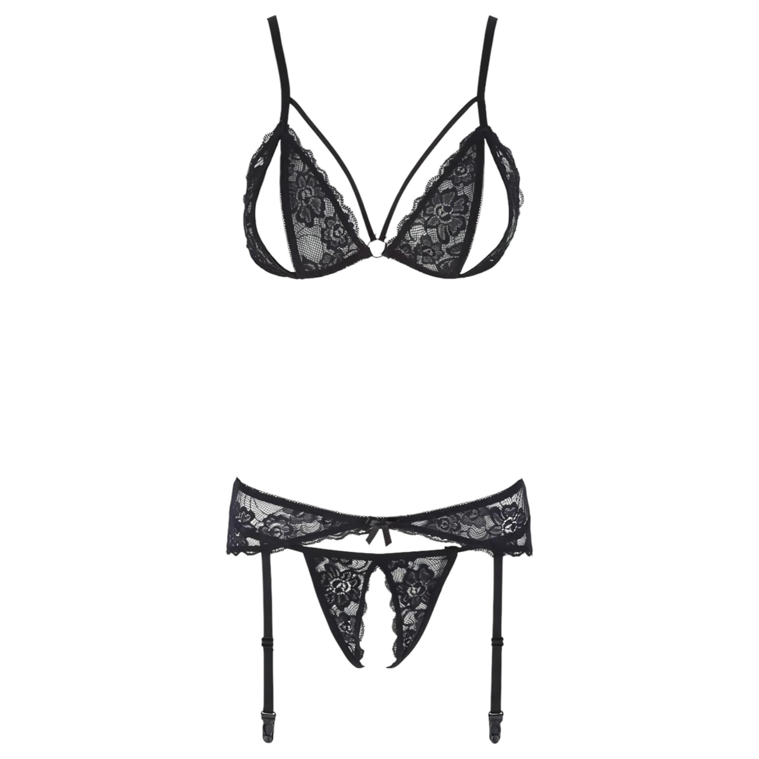 Cottelli - set lenjerie dantelată, deschisă (neagră) - XL