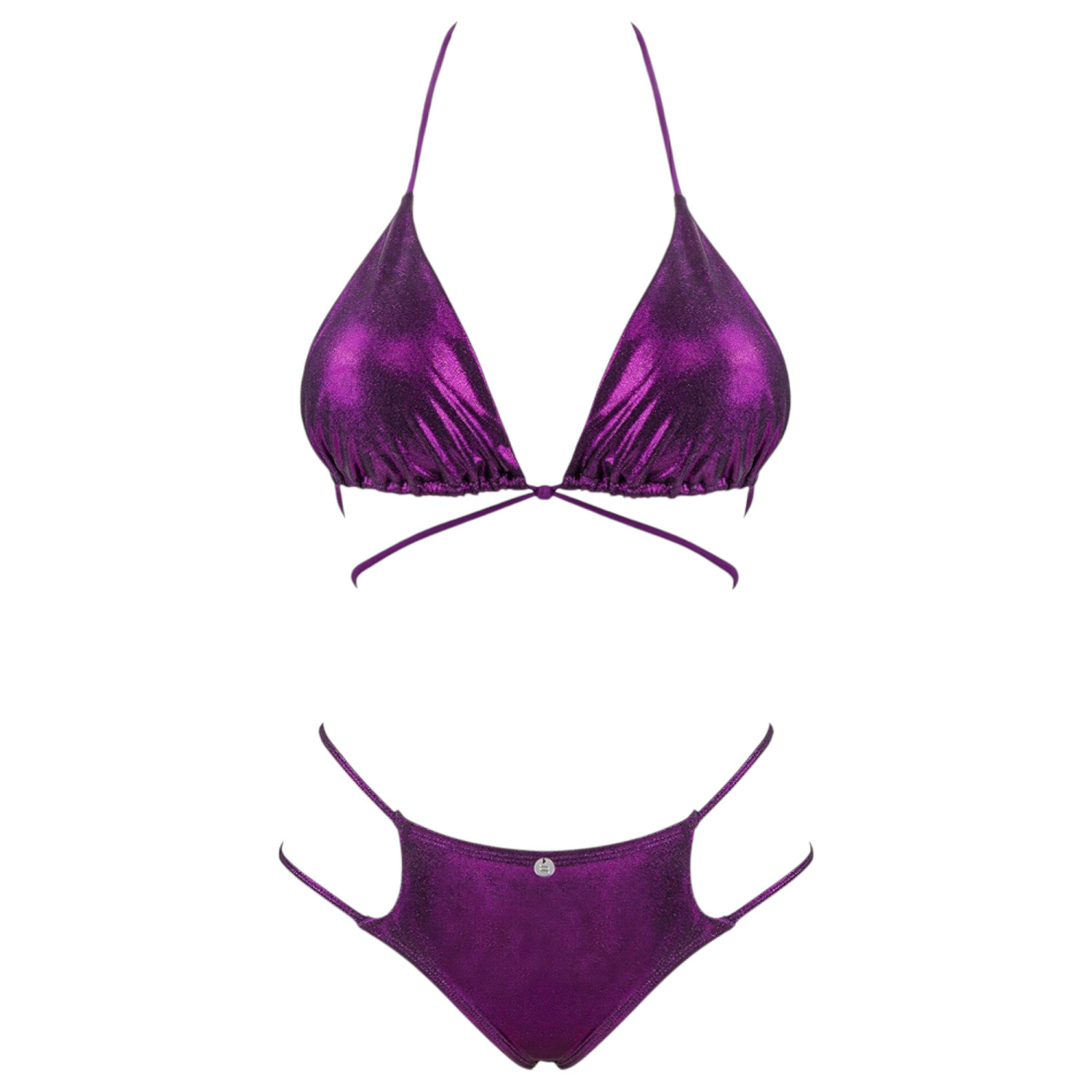 Bikini cu un efect metalic super strălucitor, cu model clasic triunghi, detalii sexy cu bretele - perfect ca să atragi toate privirile!