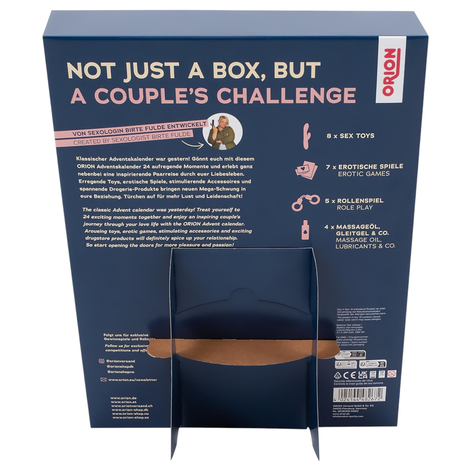 Calendarul de cadouri erotice Orion este o modalitate cu adevărat specială de a aduce experiențe sexuale noi alături de partenerul tău în fiecare zi. 24 de surprize captivante te așteaptă, fiecare oferind noi inspirații pentru jocurile în doi și momentele intime. Creat special pentru cupluri care doresc să aducă un plus de culoare în viața de zi cu zi și să descopere noi forme de apropiere și dorință. Jucăriile, accesoriile și sarcinile din calendar ascund câte o mică surpriză în fiecare zi, asigurând o experiență nouă în fiecare zi.