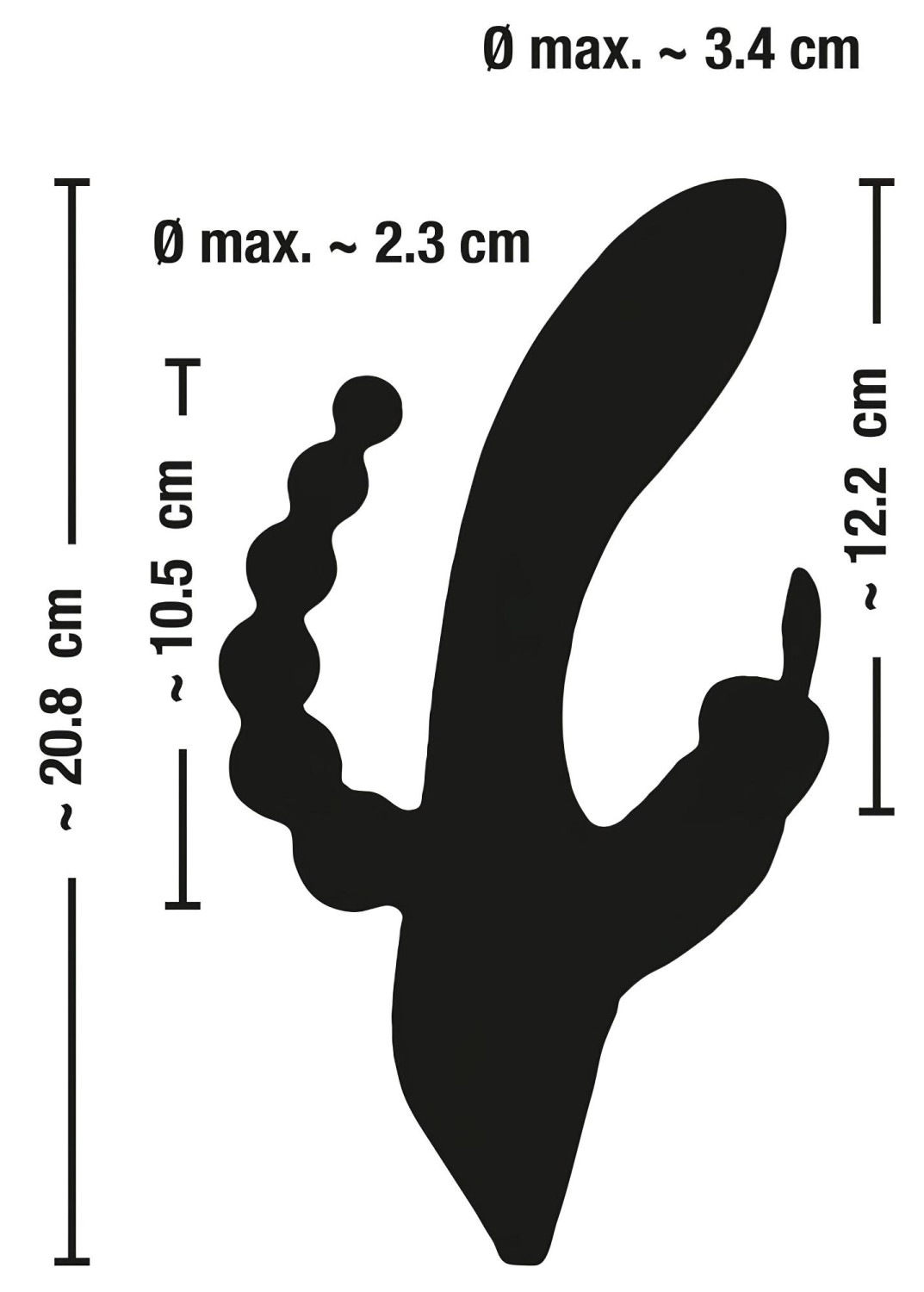 • dimensiuni braț clitoridian: 8 x 2,5 x 2,3 cm